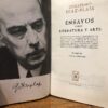 Publicado: Madrid: Aguilar, 1973 Autor: DIAZ PLAJA. Guillermo. Título: Ensayos sobre literatura y arte. El arte de quedarse solo y otros ensayos. La ventana de papel. El espíritu del Barroco. El engaño a los ojos. Defensa de la crítica y otras notas. Título completo: Prólogo de M. Cerezales. Encuadernación: Encuadernación de tapa dura Estado: Bien Información adicional: 8vo. 1144 pp. Encuadernación editorial con dorados en lomo. Pequeñas rozaduras en cabeza y pie de lomo.