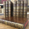 Publicado: Madrid: Joachin Ibarra, Impresor de Cámara de su Magestad, 1779 Autor: CROIX, Nicolle de la / JORDAN Y FRAGO, Josef. Título: Geografía moderna, escrita en francés por el Abad Nicolle de la Croix: traducida y aumentada por el Doctor don Josef Jordan y Frago. [8 tomos, los primeros cuatro de ellos dedicados a la Geografía de España] Encuadernación: Encuadernación de tapa dura Estado: Muy bien Información adicional: 8vo. I: 2 h. inc. port., LXXVI pp. + 256 pp. II: 2 h. inc. port. + III pp. + 408 pp. III: 2 h. inc. port., + III pp. +383 p. IV: 2 h. inc. port., + IV pp. +366 pp. V: 2 h., XII-426 p. VI: Port. + X pp. + 500 pp. VII: 2 h. inc. port. + IX pp. + 479 pp. VIII: 2 h. inc. port. + VIII + 535 pp. Encuadernación en plena piel, pasta española de época con nervios y doble tejuelo. Lomo cuajado de hierros dorados, siendo el central la imagen de un ciervo. Cortes tintados. Excelente ejemplar sin presencia de xilófagos excepto alguna extinta galería en el pie del lomo de los tomos II, III, y IV. Excelente papel de hilo de gran calidad, limpio y fresco. Buen ejemplar. Si desea ampliar la información, no dude en contactar o solicitar más fotografías. Palau 64861.